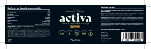 Activa es un pre-entreno con sabor naranja diseñado expresamente para ayudarte a sacar una repe más y a exprimir al máximo tu entrenamiento. Esta versión de Activa contiene cafeína.