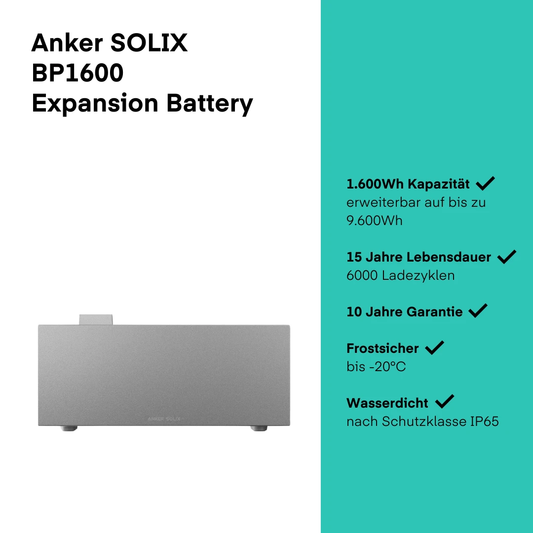 Anker SOLIX BP1600 Erweiterungsakku – stapelbar bis 9,6 kWh, wetterfest & langlebig, ideal zur Erweiterung deiner Solarbank 2 Pro oder Plus.