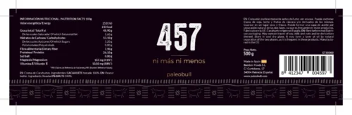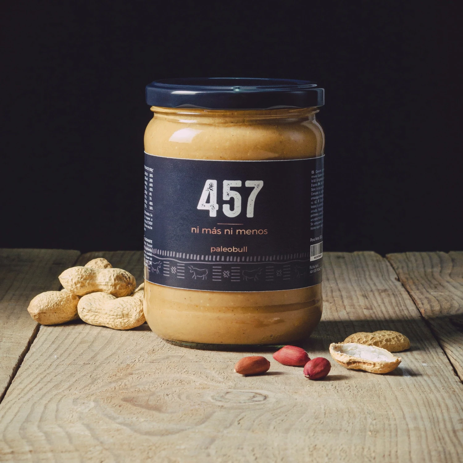 La crema de cacahuete natural de Paleobull es el resultado de tostar y triturar «457» cacahuetes en cada tarro, ni más ni menos. Sin aditivos artificiales, sin aceite de palma, sin azúcar y sin sal.