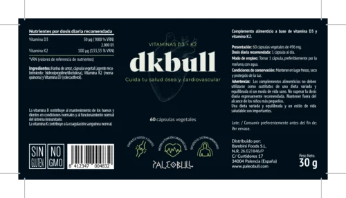 DKbull combina a la perfección los efectos sinérgicos de las vitaminas D3 y K2. Por un lado, la vitamina D3 aumenta la absorción del calcio. Por otro lado, la vitamina K2 ayuda a que ese calcio llegue a los huesos y evita que se deposite en las arterias.