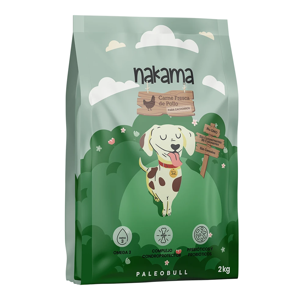 Nakama Cachorros es un pienso natural聽libre de granos, especialmente elaborado para aportar a tu cachorro los nutrientes esenciales para crecer sano y asegurar su desarrollo 贸ptimo.