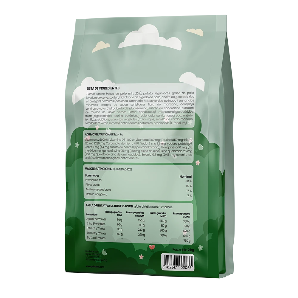 - Al apoyo articular:聽El complejo condroportector ayuda a prevenir problemas articulares y a mantener la movilidad, especialmente importante en razas grandes o en perros mayores.