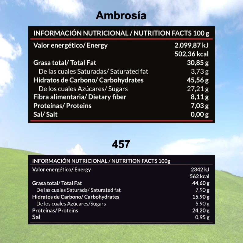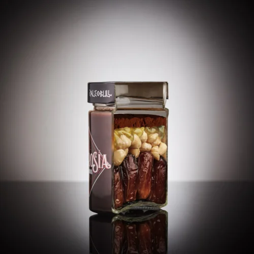 Crema de cacao y avellanas saludable. AmbrosĂa estĂĄ elaborada con una selecciĂłn de los mejores ingredientes: dĂĄtiles, cacao, avellanas y aceite de oliva virgen extra (AOVE).