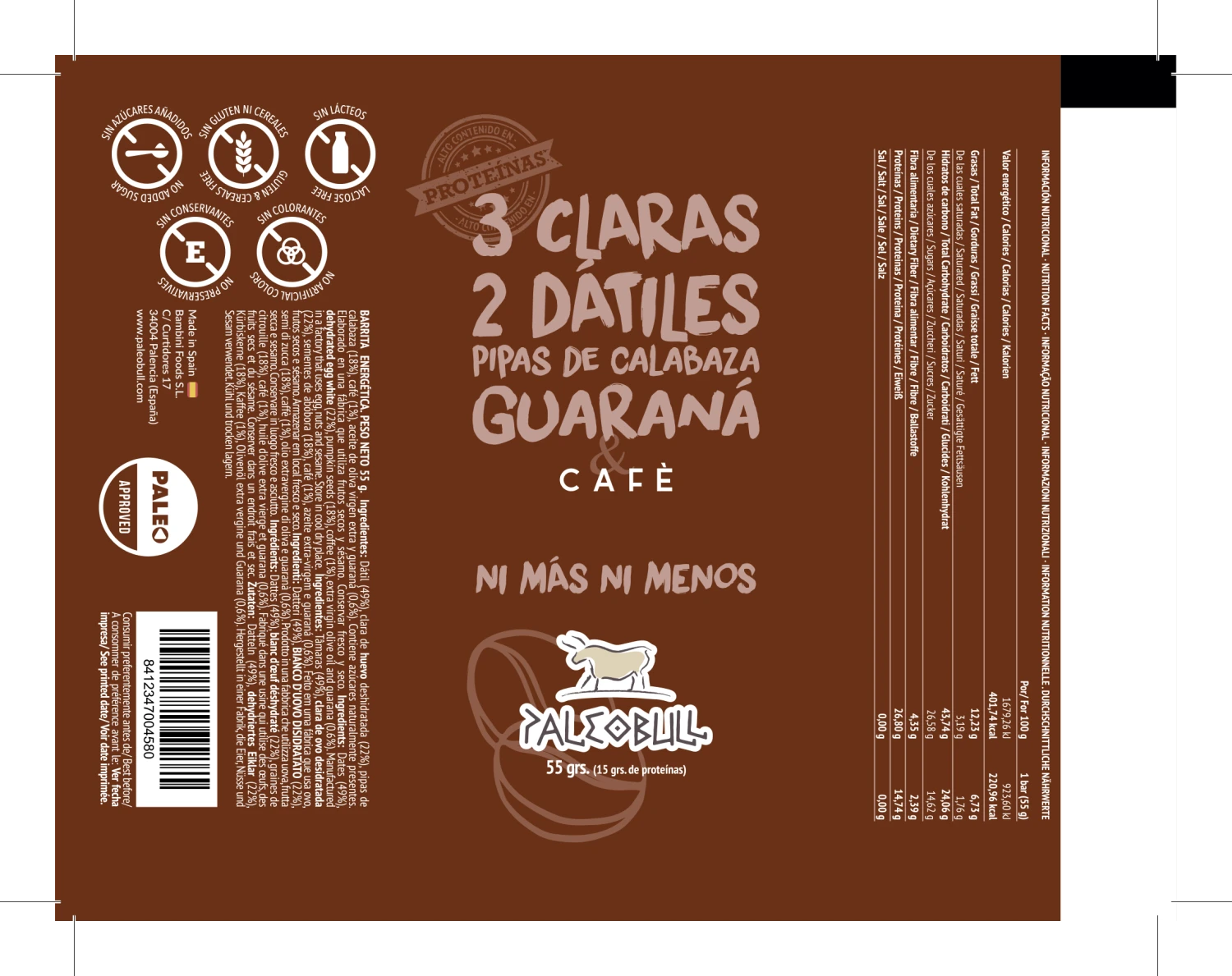 Disfruta de estas 15 deliciosas barritas energéticas de café y guaraná con alto contenido en proteínas. Elaboradas únicamente con ingredientes naturales: dátiles, clara de huevo deshidratada, pipas de calabaza, café y guaraná. Ideales para un estilo de vida saludable.