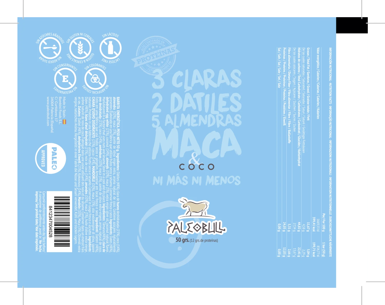 Disfruta de estas 15 deliciosas barritas energĂ©ticas de coco y maca con alto contenido en proteĂnas. Elaboradas Ășnicamente con ingredientes naturales: dĂĄtiles, clara de huevo deshidratada, coco, almendras, maca, aceite de oliva virgen extra y aroma natural de coco. Ideales para un estilo de vida saludable.