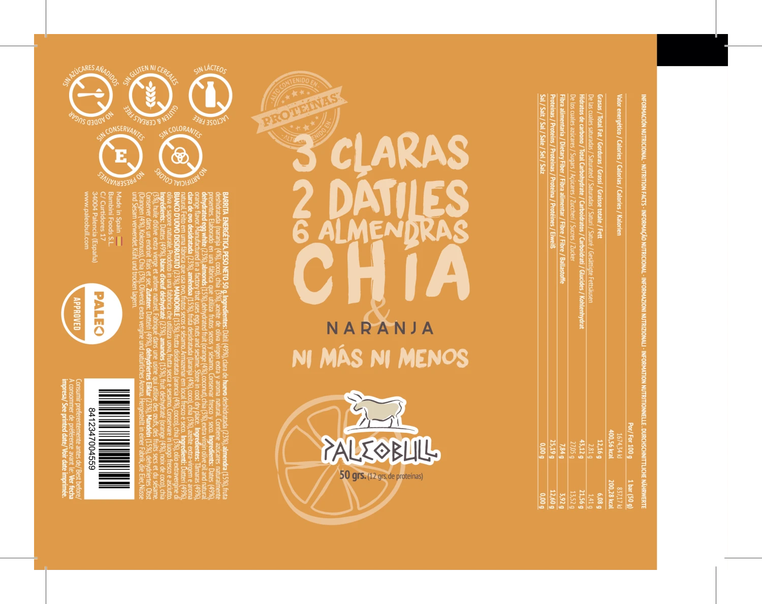 Disfruta de estas 15 deliciosas barritas energĂ©ticas de naranja y chĂa con alto contenido en proteĂnas. Elaboradas Ășnicamente con ingredientes naturales: dĂĄtiles, clara de huevo deshidratada, almendras, chĂa, naranja deshidratada y aroma natural de naranja. Ideales para un estilo de vida.