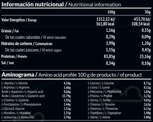 Información Nutricional y Aminograma de Producto
