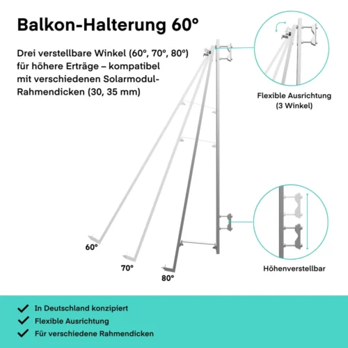 Balkonkraftwerk mit 450-Watt-Leistung dank bifazialer Eigenschaft – Komplettpaket für Gitterbalkone mit 800W-Wechselrichter.