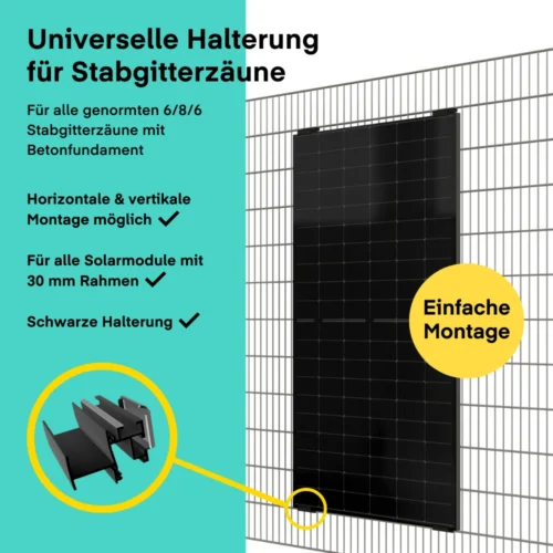 Balkonkraftwerk mit bis zu 2000-Watt-Leistung dank bifazialer Solarmodule (30 J. Garantie) – Komplettpaket für die Montage an Stabgitterzäunen mit 800W-Wechselrichter mit integriertem WiFi-Modul.