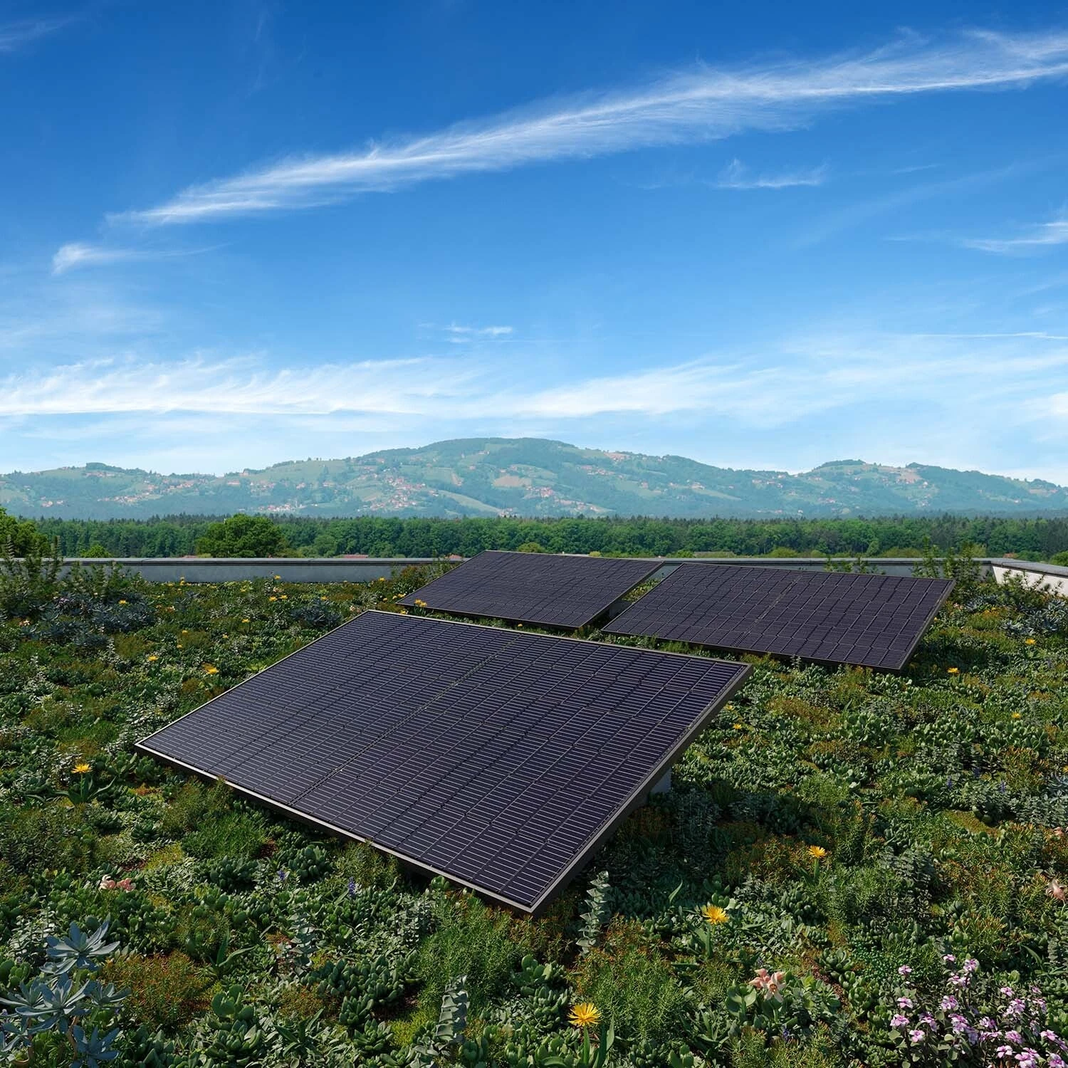 Balkonkraftwerk mit bis zu 1500-Watt-Leistung dank bifazialer Solarmodule â Komplettpaket fĂŒr FlachdĂ€cher mit 800W-Wechselrichter mit integriertem WiFi-Modul.