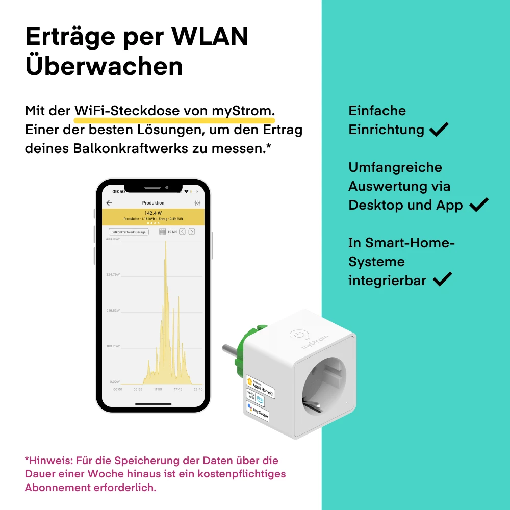 Balkonkraftwerk mit bis zu 1800-Watt-Leistung dank bifazialer Eigenschaft – Komplettpaket für die Fassade / Wandmontage 800W-Wechselrichter mit integriertem WiFi-Modul.