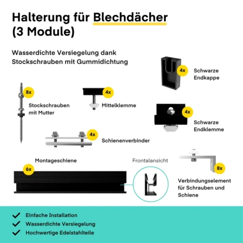 Balkonkraftwerk mit bis zu 1500-Watt-Leistung dank bifazialer Eigenschaft – Komplettpaket für Blechdächer mit 800W-Wechselrichter mit integriertem WiFi-Modul.