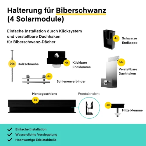 Balkonkraftwerk mit bis zu 1800-Watt-Leistung dank bifazialer Eigenschaft – Komplettpaket für Biberschwanzdächer mit 800W-Wechselrichter mit integriertem WiFi-Modul.