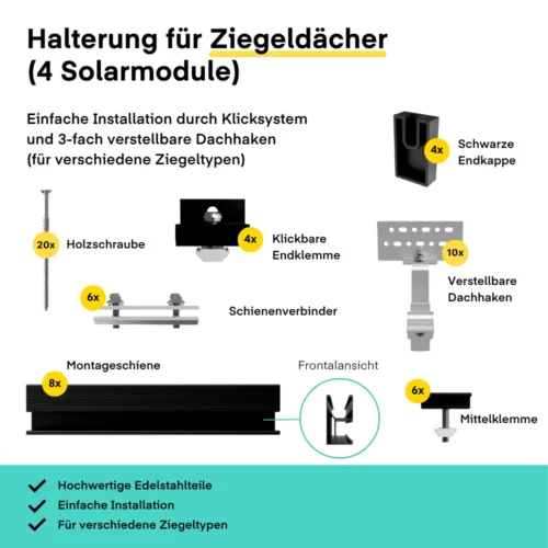 Balkonkraftwerk mit bis zu 1800-Watt-Leistung dank bifazialer Eigenschaft – Komplettpaket für Ziegeldächer mit 800W-Wechselrichter mit integriertem WiFi-Modul.