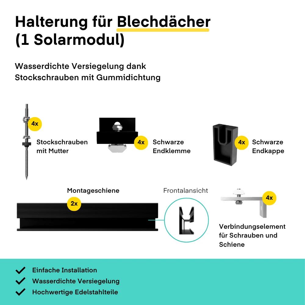Balkonkraftwerk mit bis zu 500-Watt-Leistung dank bifazialer Eigenschaft â Komplettpaket fĂŒr BlechdĂ€cher mit 800W-Wechselrichter.